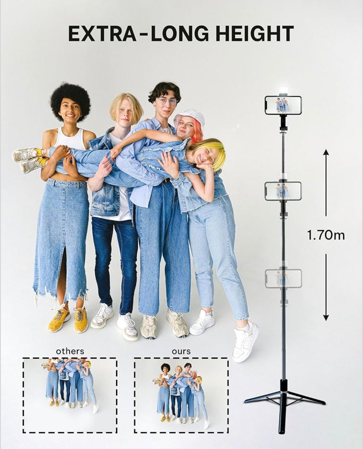 Grâce à ses 1,7 mètres de portée, vous encadrez toute la scène, en solo ou en groupe, sans efforts.